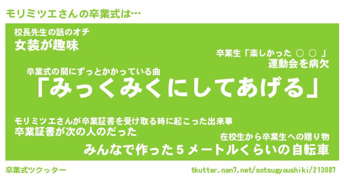 | 胡散臭い通販商品みたいなあだ名 | 『必ず成功するブレスレット…その名も「モリミツエ」』 |