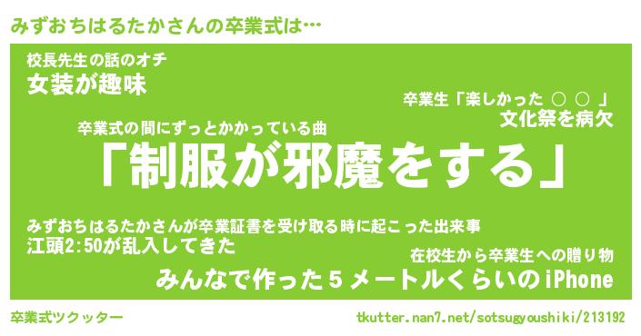 | ツイッター | みずおちはるたかさんのツイッターID『dendenmushi_nyan』 |