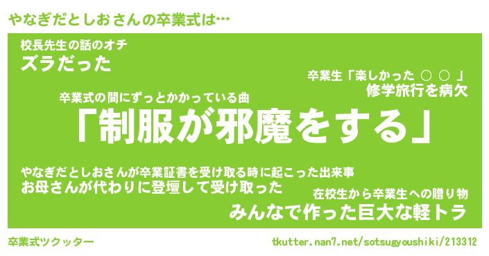 | 伝説のあだ名 | 『封印されしスナイパーやなぎだとしお』 |