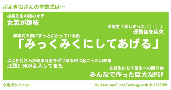 | ヘコむあだ名 | 『ぷよっふぃ~』『つくし』 |