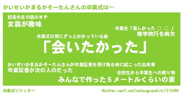 | 胡散臭い通販商品みたいなあだ名 | 『モテモテ間違いなし霊験あらたかなお札…その名も「かいせいかまるかそーたん」』 |