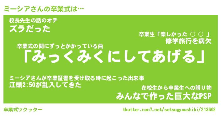 | 意味不明あだ名 | 『ペロリンミーシア』『永久保存ミーシア』 |