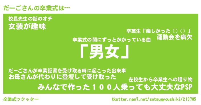 | 男性向けラノベタイトル風あだ名 | 『だーごの憂鬱』 |