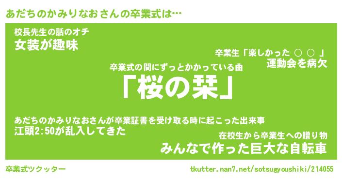 | 伝説のあだ名 | 『封印されしスナイパーあだちのかみりなお』 |