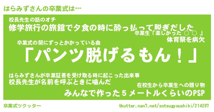 | 意味不明あだ名 | 『ペロリンはらみず』『永久保存はらみず』 |