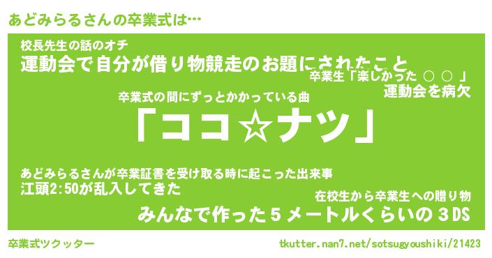 | 料理風あだ名 | 『節約★あどみらると油揚げの玉子丼』 |