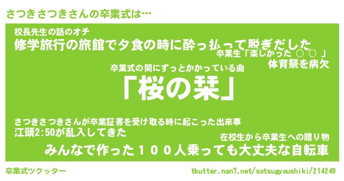 | 肩書あだ名 | 『さつきさつき店長』『さつきさつき団長』 |