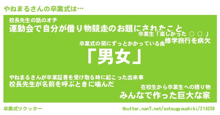 | 胡散臭い通販商品みたいなあだ名 | 『必ず成功する霊験あらたかなお札…その名も「やねまる」』 |