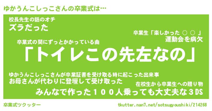 | 伝説のあだ名 | 『伝説のスナイパーゆかうんこしっこ』 |