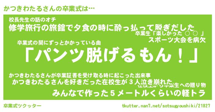 | 肩書あだ名 | 『かつきわたる社長』『かつきわたる班長』 |