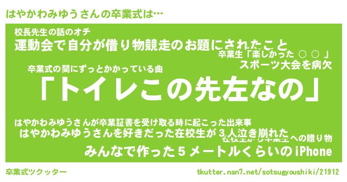 | 胡散臭い通販商品みたいなあだ名 | 『必ず成功する霊験あらたかなお札…その名も「はやかわみゆう」』 |