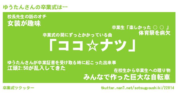 | 意味不明あだ名 | 『ペロリンゆうたん』『永久保存ゆうたん』 |