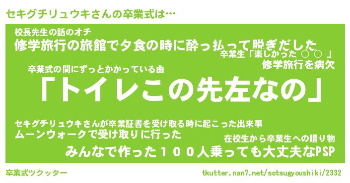 | 伝説のあだ名 | 『伝説のスナイパーセキグチリュウキ』 |