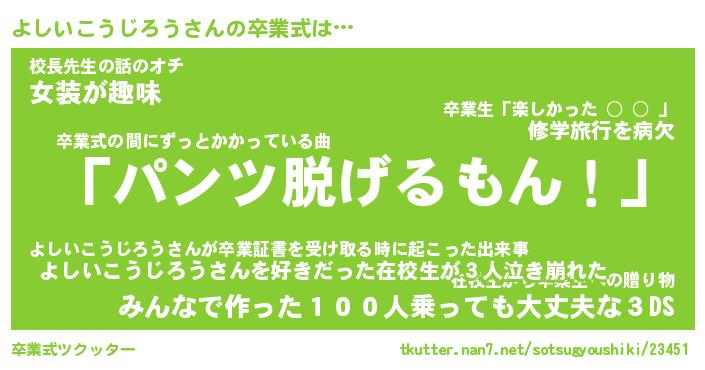 | 男性向けラノベタイトル風あだ名 | 『よしいこうじろうの憂鬱』 |