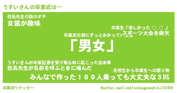 | 男性向けラノベタイトル風あだ名 | 『うすいの憂鬱』 |