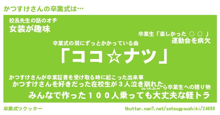 | 意味不明あだ名 | 『ペロリンかつすけ』『永久保存かつすけ』 |
