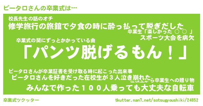 | ヘコむあだ名 | 『ピーふぇ~』『豆乳』『ピーっちょ』 |