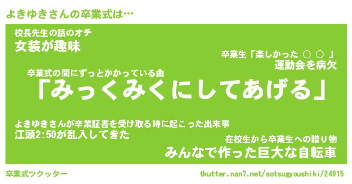 | 胡散臭い通販商品みたいなあだ名 | 『必ず成功する霊験あらたかなお札…その名も「よきゆき」』 |