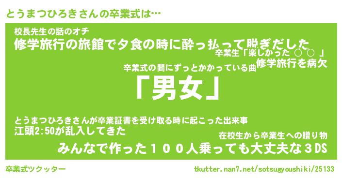 | 恥ずかしいあだ名 | 『プリティーとうまつひろき』『とうちん』 |