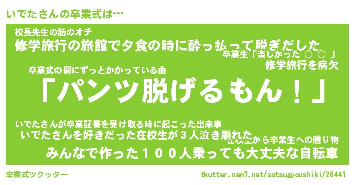 | ヘコむあだ名 | 『いでにー』『牛乳』『いでぷりん』 |