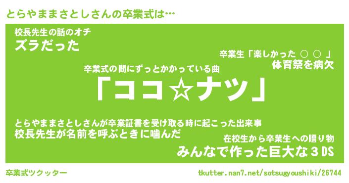 | ヘコむあだ名 | 『とらふぇ~』『なまこ酢』『とらお』 |