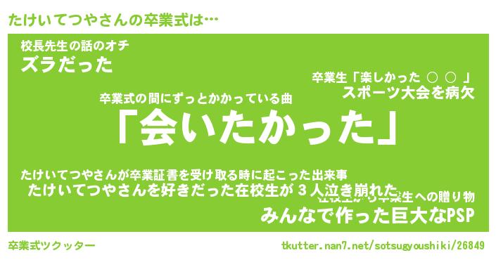 | ヘコむあだ名 | 『たけにー』『酢こんぶ』『たけを』 |