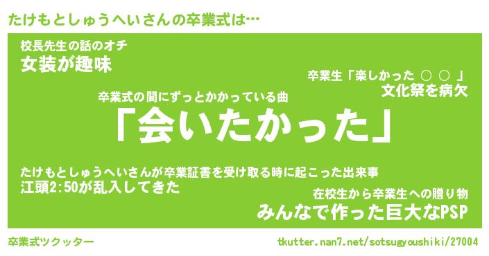 | 伝説のあだ名 | 『不死鳥のスナイパーたけもとしゅうへい』 |