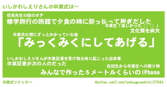 | 胡散臭い通販商品みたいなあだ名 | 『必ず成功する霊験あらたかなお札…その名も「いしかわしえり」』 |