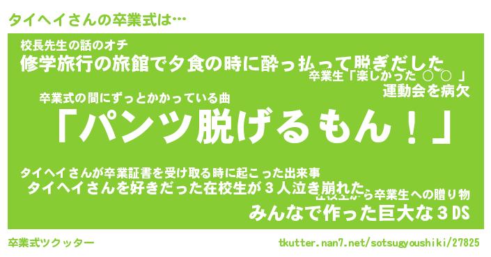 | 意味不明あだ名 | 『ペロリンタイヘイ』『永久保存タイヘイ』 |