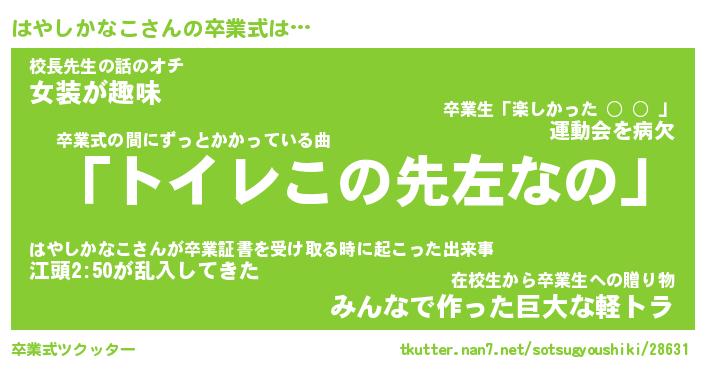 | 伝説のあだ名 | 『伝説のスナイパーはやしかなこ』 |