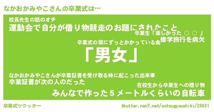| 女子向けラノベタイトル風あだ名 | 『(仮)なかおかみやこのやんごとなき事情』 |