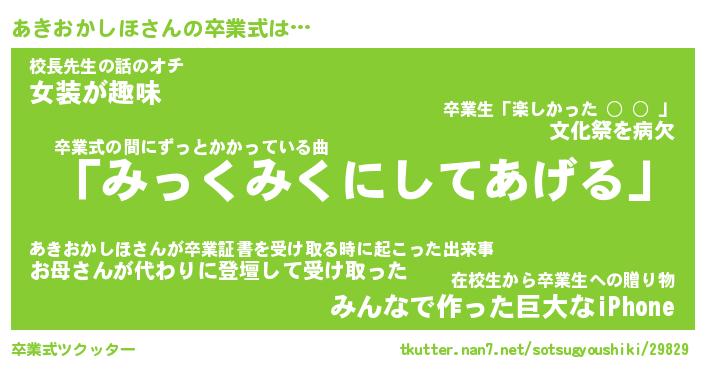 | ヘコむあだ名 | 『あきもー』『つくし』『あきお』 |