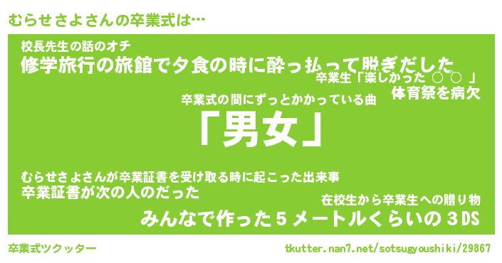 | 伝説のあだ名 | 『伝説のスナイパーむらせさよ』 |