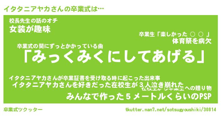 | 胡散臭い通販商品みたいなあだ名 | 『必ず成功する霊験あらたかなお札…その名も「イタタニアヤカ」』 |
