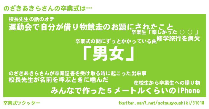 | 男性向けラノベタイトル風あだ名 | 『のざきあきらの憂鬱』 |