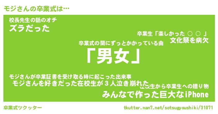 | ヘコむあだ名 | 『モジもー』『なまこ酢』『モジを』 |