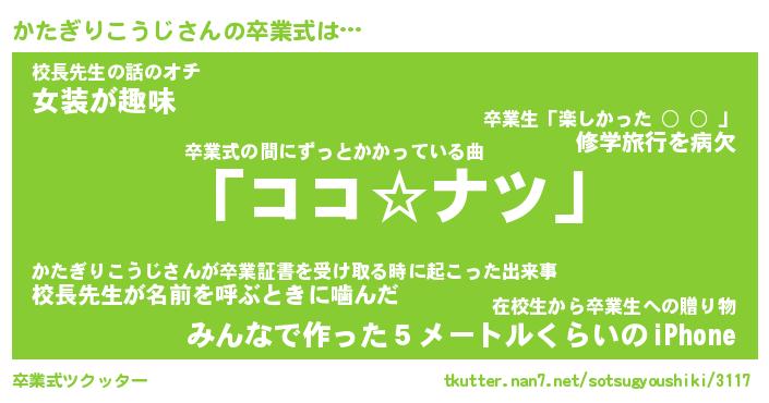 | 肩書あだ名 | 『かたぎりこうじ社長』 |