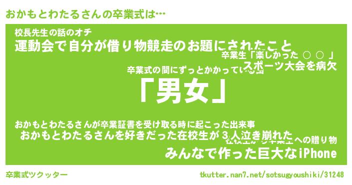 | 男性向けラノベタイトル風あだ名 | 『おかもとわたるの憂鬱』 |