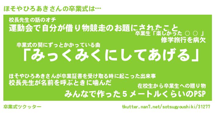 | 胡散臭い通販商品みたいなあだ名 | 『必ず成功するブレスレット…その名も「ほそやひろあき」』 |