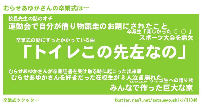 | 伝説のあだ名 | 『伝説のスナイパーむらせあゆか』 |
