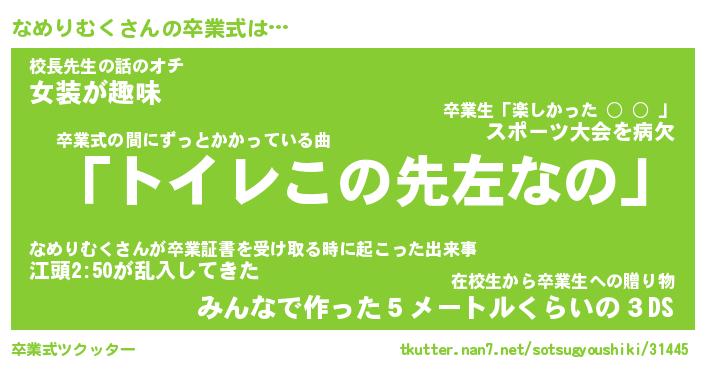 | 男性向けラノベタイトル風あだ名 | 『なめりむくの憂鬱』 |