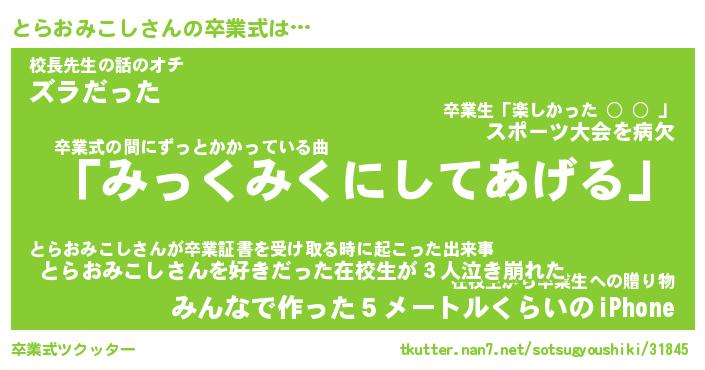 | 男性向けラノベタイトル風あだ名 | 『とらおみこしの憂鬱』 |
