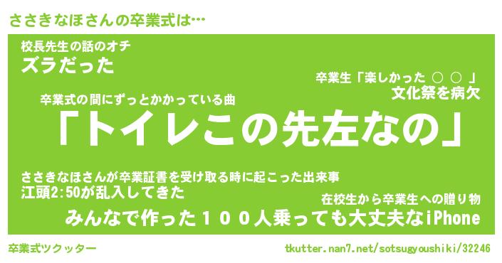 | ヘコむあだ名 | 『ささにゅー』『つくし』『ささ太郎』 |