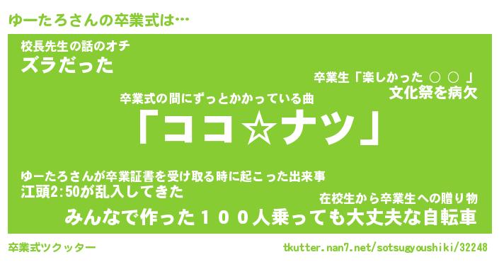 | 意味不明あだ名 | 『ペロリンゆーたろ』『永久保存ゆーたろ』 |