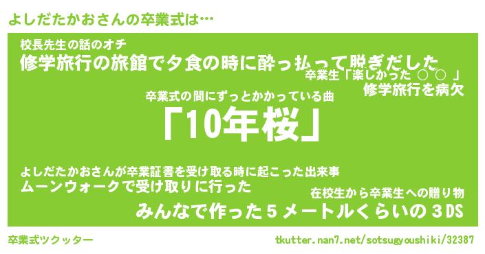 | ヘコむあだ名 | 『よしふぇ~』『つくし』『よしお』 |