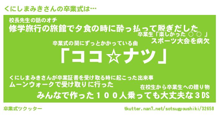 | 男性向けラノベタイトル風あだ名 | 『くにしまみきの憂鬱』 |