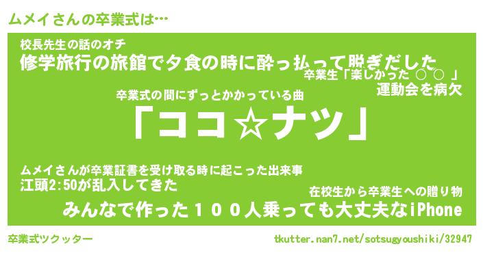 | ヘコむあだ名 | 『ムメにー』『なまこ酢』『ムメお』 |