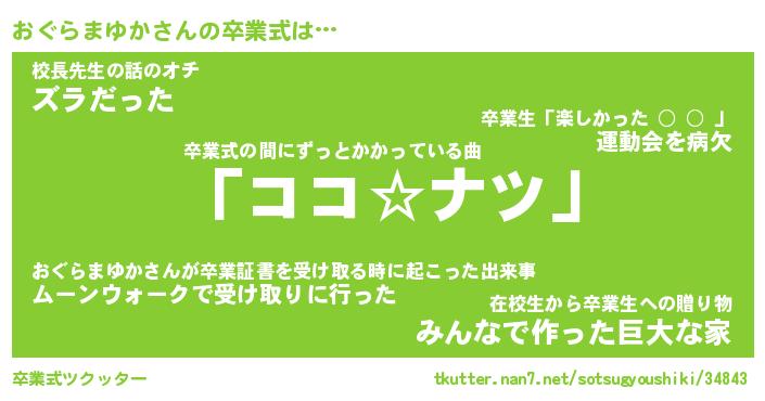 | 伝説のあだ名 | 『不死鳥のスナイパーおぐらまゆか』 |