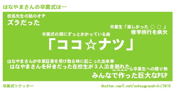 | ヘコむあだ名 | 『はなもー』『なまこ酢』『はなを』 |