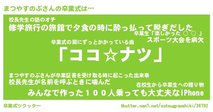 | 伝説のあだ名 | 『不死鳥のスナイパーまつやすのぶ』 |